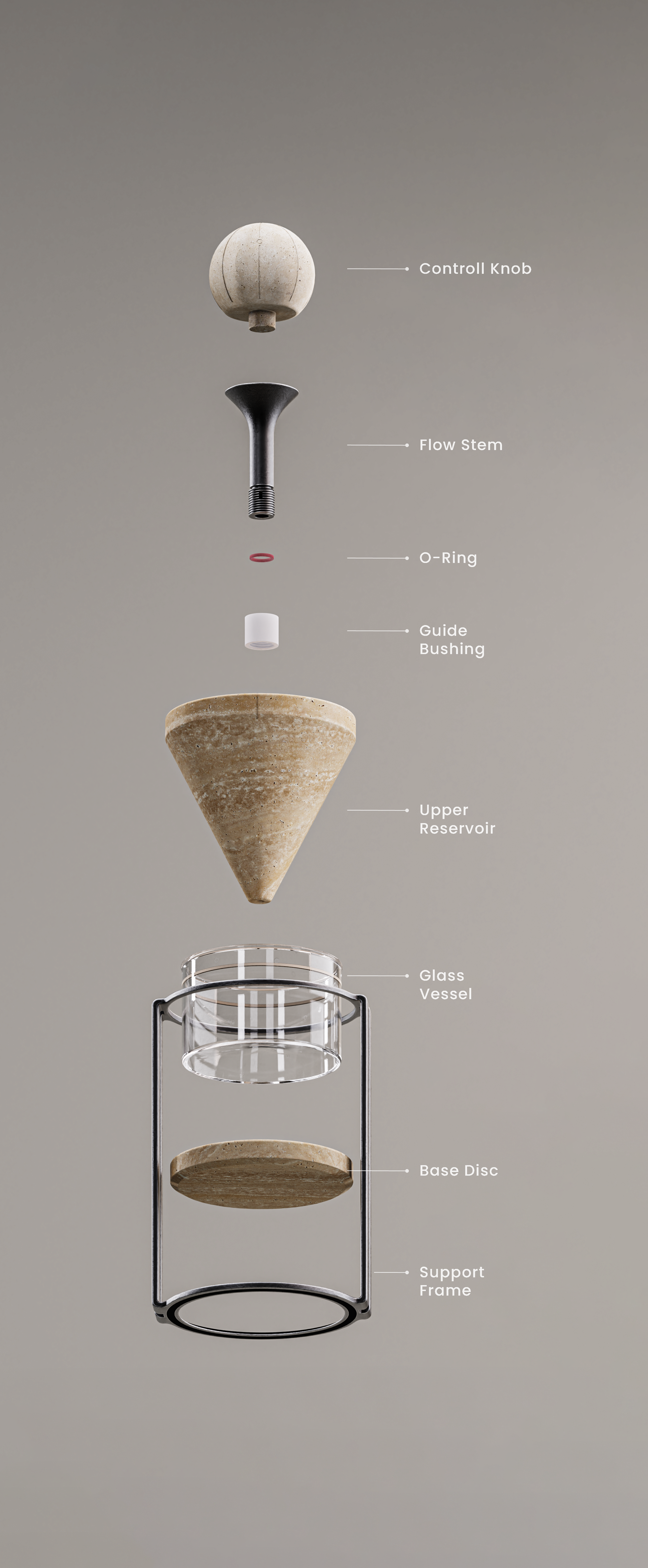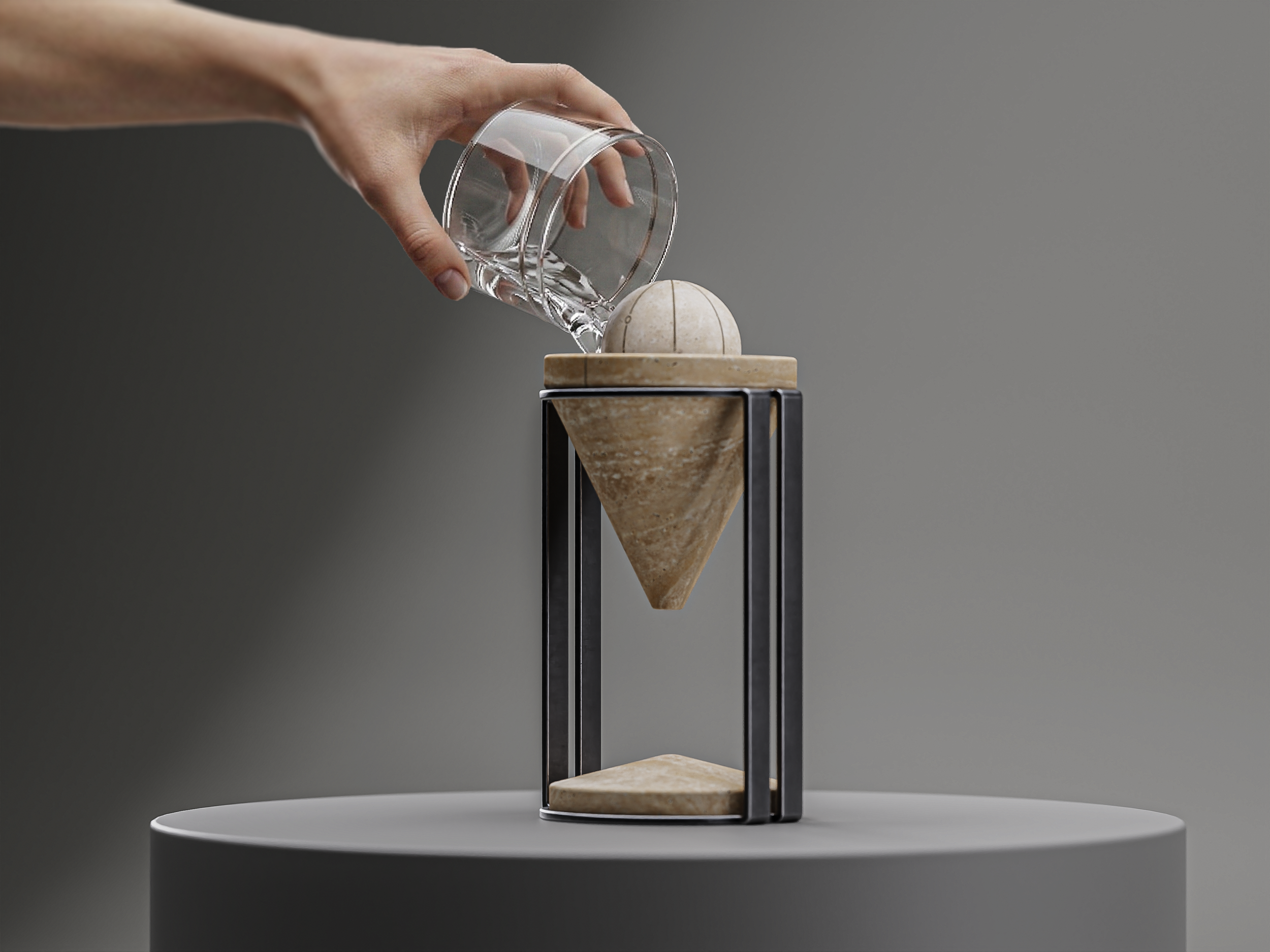Clepsydra, an ancient water clock rooted in classical physics, is revived in this project as a modern aesthetic object. It highlights time not just as a measurable unit but also as a bearer of aesthetic and cultural value.