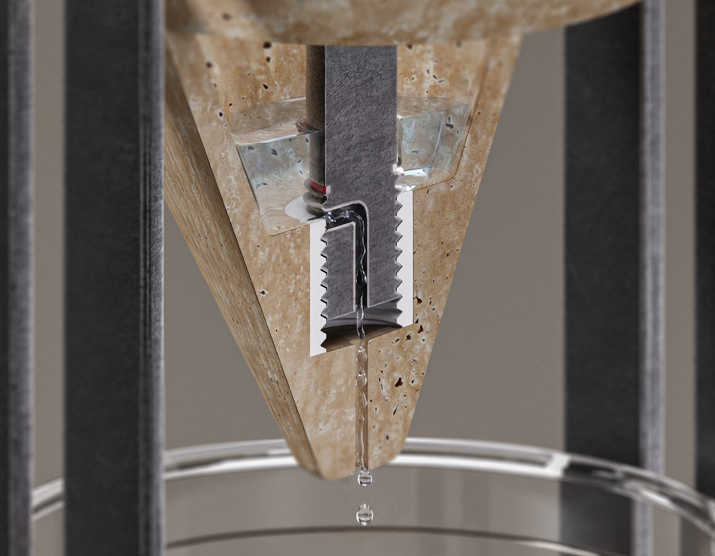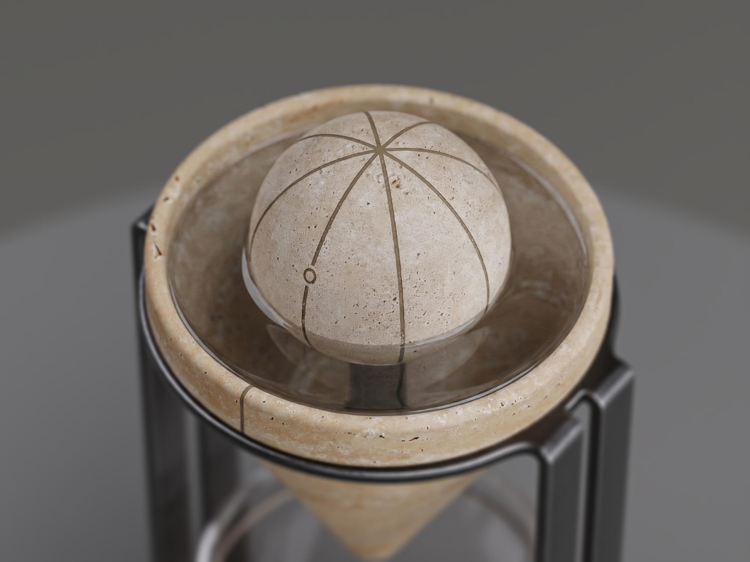 The design's ability to scale down Clepsydra aligns with both classical physics principles and modern theorems. Using travertine material born from the interaction of water and time, the design preserves the geometric language of the past.